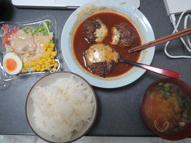 今夜は冷凍したハンバグーを使った煮込みハーンバグを作ってみました。