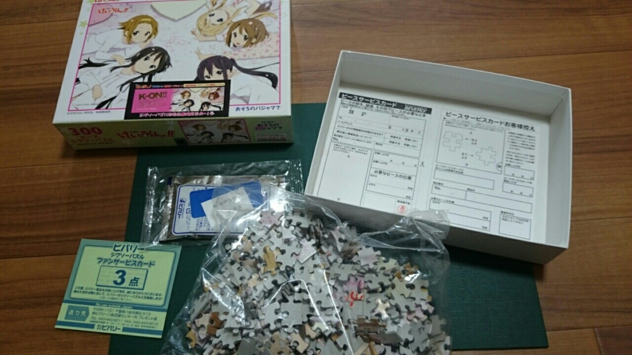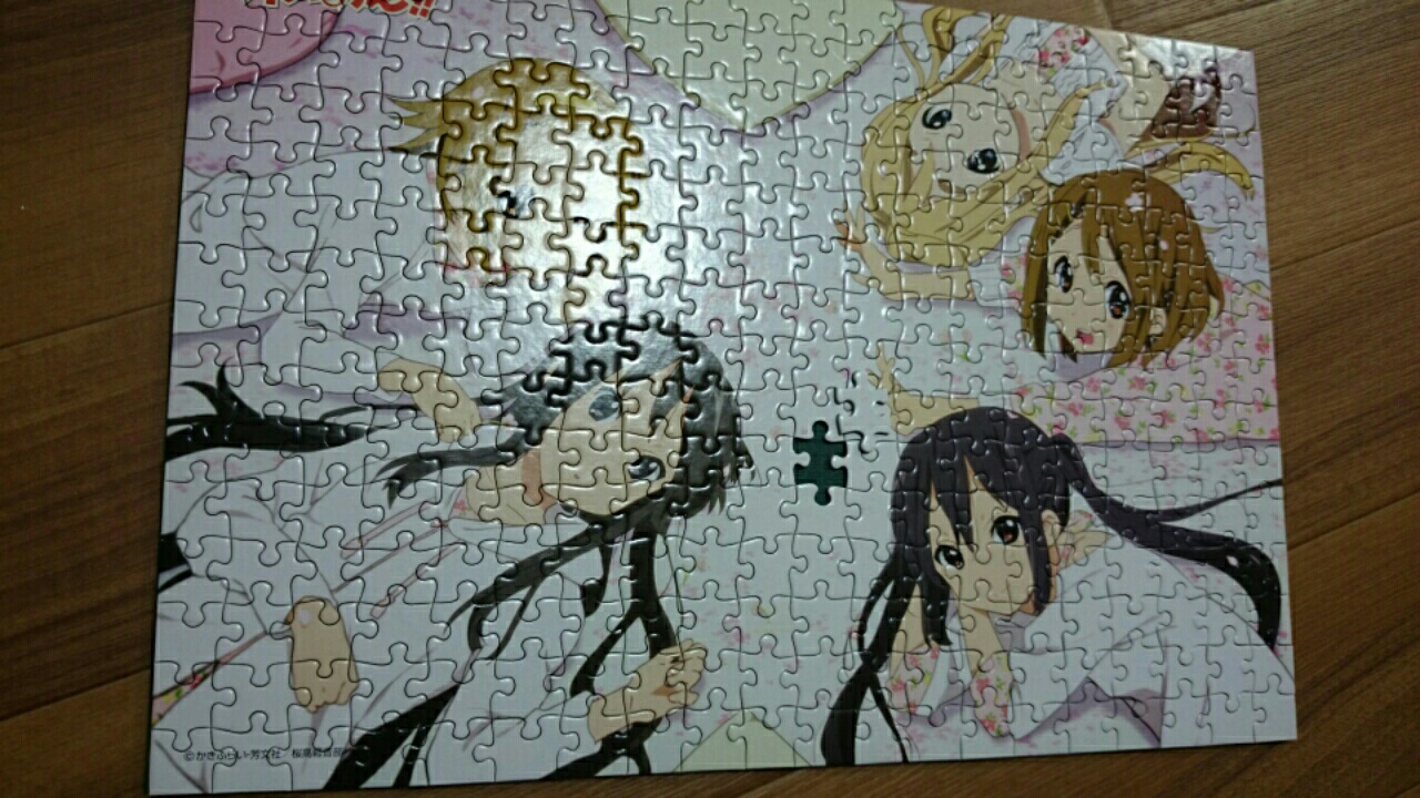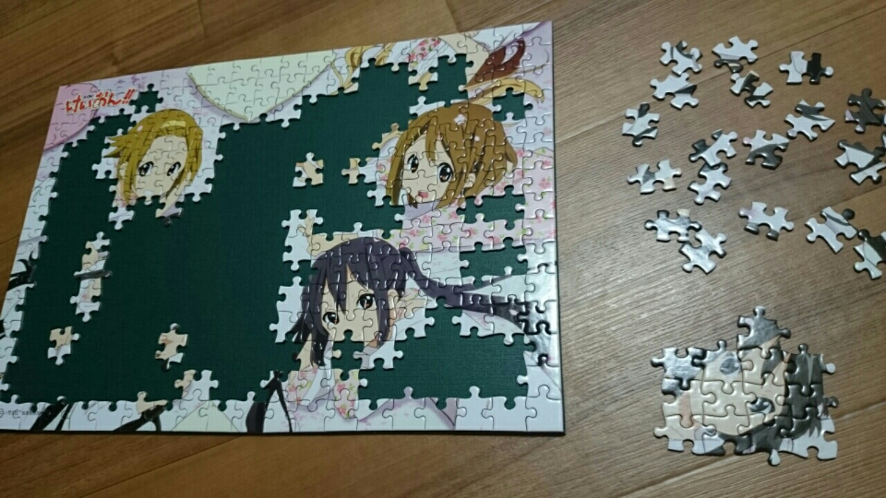 というわけで、先日開催され大反響となったパ力本願(ソロプレイ)の詳細をお伝えしようかと思います。 今回挑戦したのは、この前ブログにうpしたように『けいおん!!』のパズルです。 箱を開けたものがこちら。 皆様あまり見たことがないかと思います。 入っているものとしては、パズルのピスー、のり、サビースーカドですね。 のりは完成したときに使います。 カドーは、ーピスが紛失や足りなかった場合に使います。 さすがの私も利用したことはありませんね。 大きさを比較するための1円玉を置き忘れてしまいました。 これ、見れば分かりますね。 りっちゃんです。 りっちゃんの目です。 HTT(放課後ティータイム)の方々は、目の形や髪の色も違うので比較的、判別しやすかったです。 まずは基本となる外枠を作っていきます。 なぜか、上の一つが見つからず、外周の完成がだいぶ後回しになってしまいました。 同時進行で、分かりやすい部分を進めていきます。 顔や髪の毛を集めておきます。 ぼんやりと浮かんできますね。 生首状態です。 ちょっと進みます。 3人の顔がハッキリしてきました。 右にある澪ちゃんが、悲しそうな顔に見えます。 そして、むぎちゃん完成。 むぎちゃん、脅威の追い上げです。 今回難しかったのは、みんなの顔の向きがちょっとずつ違うところですね。 アレ?という感覚になりました。 一気に飛んで残り1ピスー。 りっちゃんのおでこが、やっぱり光ってしまいました。 そして。 完成。 3時間切るくらいで出来ました。 フーレムの色を白にしてみましたが、なかなかマッチしていていい感じです。 これで残りの積みパズルは、どこかに封印されているDえもんのみ。 一筋縄ではいかないレベルだったと記憶しております。 来るべきその日に備えて、パ力を高めておく必要がありますね。 またパズル配信もやりたいです。 今なら、某激辛ペヤングにも打ち勝てますわ。 PR |