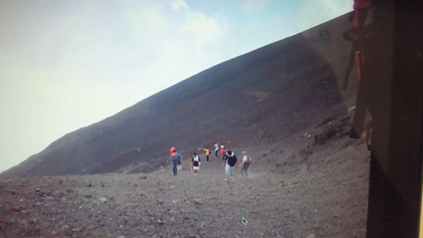 確か昼の1時過ぎだったかと思います。 ちなみに、富士山の頂上で本当のてっぺんは剣ケ峰と呼ばれる場所になるのですが、今回の登山ではそこまで行っておりません。 行けるのなら行ってみたかったりもしますが、ぐるっと一周まわるのは結構時間がかかるし、帰りもどうなるか分からなかったからです。 次に富士登山をする際には、ホントのてっぺんまで行ってみたいですね。 ご存知のとおり富士山は火山であり、いまもなお火山活動を続けている活火山なんですよね。 そうなると当然噴火口があるわけで、下山する前にちらっとそちらに行ってみました。 早速、私は転びました。 それはもう見事です。 尻餅をつき、滑るように転びました。 幸いケガはありませんでしたが、まさか自分が転倒第一号になるとは思いませんでした。 あれです、我が身をもって下山の注意をしたのでありますよ。 この出来事が教訓となり、下山時にも大きな事故を起こすことがなかったという話も聞いております。 さすがっす、自分。 で、ここから本格的に下っていきます。 登りと下りでは使う筋肉が違うにもかかわらず、頂上から九合目・八合目は怖いくらいの傾斜になっていて、最初の頃は降りるのも一苦労でした。 私は途中でステップを踏みながら降りると非常に楽だということを発見し、持っていた棒をスキーのストックのように使い、踊るように下っていきました。 Hの下り方は盗人のようでした。 Yはジグザグに下りる方法に活路を見出しました。 色々な下り方があるものです。 みんなちがって、みんないい。 これだと傾斜はあまりわかりませんが、ホントに大変だったんですよ。 考えてみれば、登りのときには手や棒をフル活用してましたから、下りるときにも急なのは当然ですよね。 しかも柵とかないから、転げ落ちたらそのままお陀仏です。 風が強い日だったら余計に怖かったかもしれませんね。 高所恐怖症の私は、この急斜面ゾーンでは極力下を見ないようにしてました。 お決まりですよね。 登りと違って、下りは砂の上を歩いているような感じでした。 そのため、周りの人が巻き起こした砂が顔や体に襲いかかりました。 皆はタオルを巻いたり、サングラスをかけたりして予防してましたが、私はそういった装備を持っていなかったのでスッピン状態でした。 そのため、一人で下りるときには全然大丈夫なんですが、様子を見ようと振り返ると大量の砂埃に襲われ目を開けられませんでした。 マイケル・ジャクソンのような人がお忍びで下山していると思ったら、Yでした。 ムーンウォークっぽく下りている人がいると思ったら、やっぱりYでした。 後ろ向きで下りると楽だという噂が流れ試してみましたが、あまりの怖さにやめました。 楽かもしれませんが、後ろが見えず恐怖が倍増です。 命知らずの荒くれ野郎にはおすすめです。 そんな風に工夫をしながら下りていくと、看板がありました。 ここで簡単に今回のKFCのルートを確認しておきます。 登りは黄色ルートである「吉田口」を利用しました。 ここは山小屋が多く、4つあるルートのなかで最も初心者向けだと言われております。 実際、山小屋も多くて登山客も多かったので、安心して登ることができました。 下山は赤文字の「須走口」を選びました。 このルートを選んだ理由はただ一つ、後述の砂走りができるからです。 一足で3m進むとまで言われている砂走りとは一体? 転倒者続出、怪我人発生、そして待ち受けるKFC史上最悪の大事件。 遭難したHの運命は如何に? |